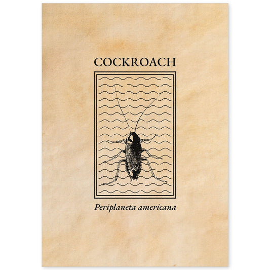 Lámina Vintage de Cucaracha en Estilo Grabado Sepia