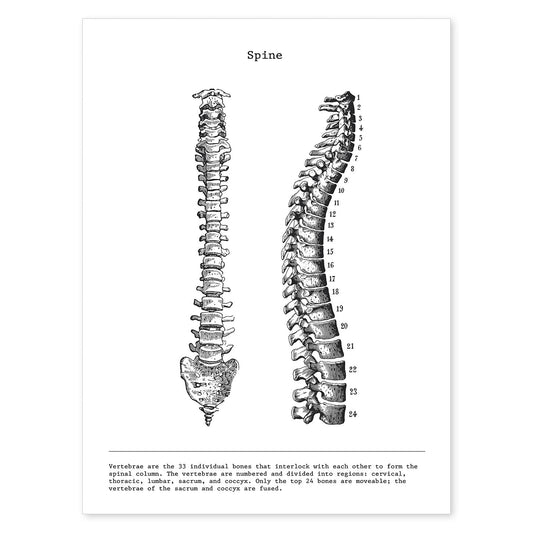 Lámina de Anatomía de Columna Vertebral en Blanco y Negro