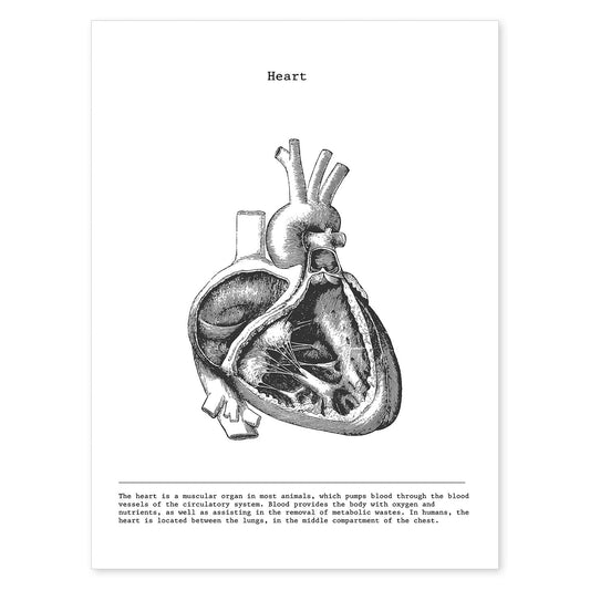 Láminas de Anatomía del Cuerpo Humano en Blanco y Negro - Corazón