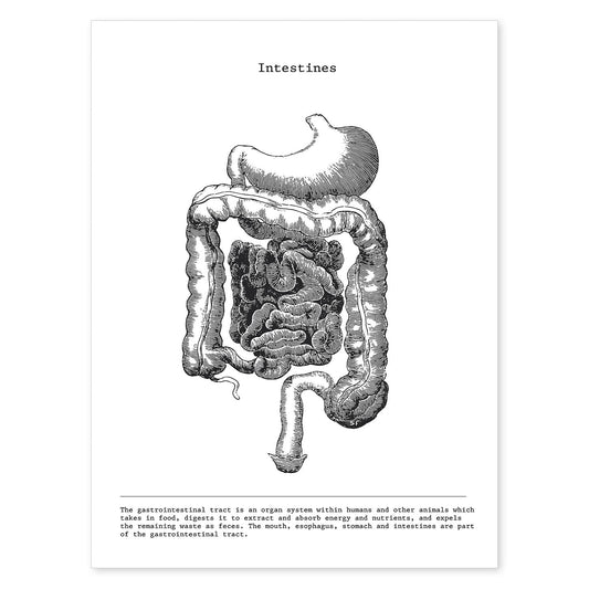Lámina de Anatomía del Cuerpo Humano en Blanco y Negro - Intestinos