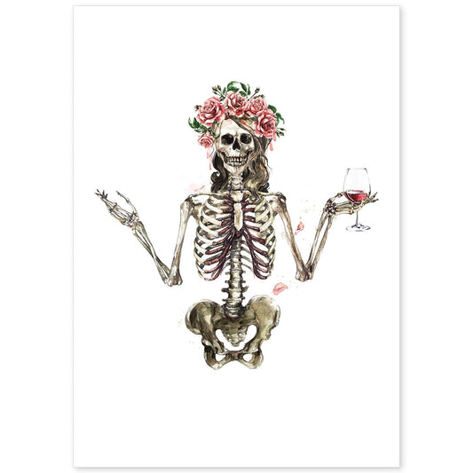 In offertaLámina de Esqueleto Chica con Vino y Flores