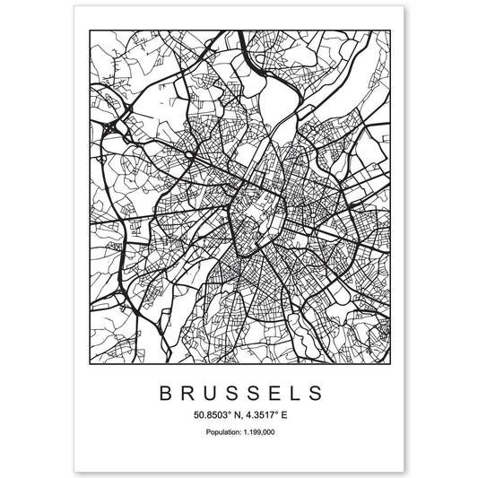 Lámina estilo nórdico del mapa de Brussels en blanco y negro