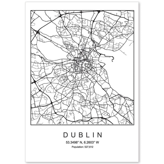 Lámina estilo nórdico de mapa de Dublin en blanco y negro