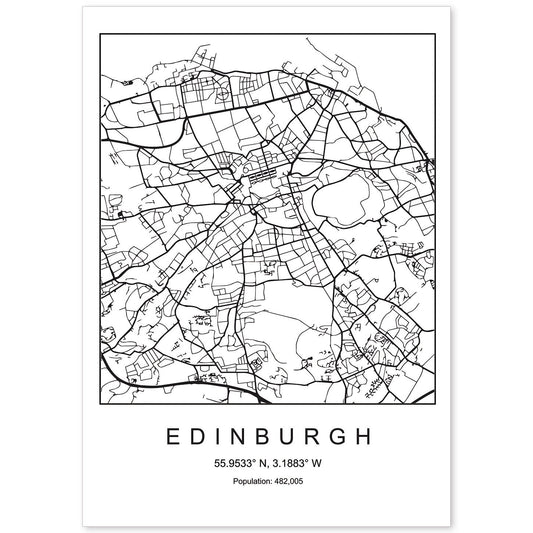 Lámina estilo nórdico de mapa de Edimburgo en blanco y negro