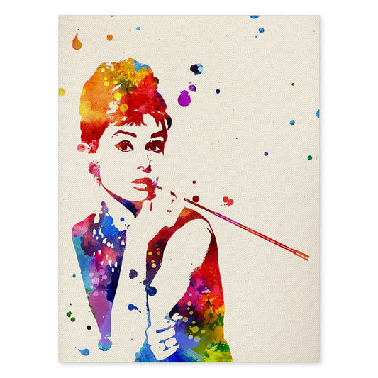 Póster Acuarela Audrey Hepburn Películas Antiguas