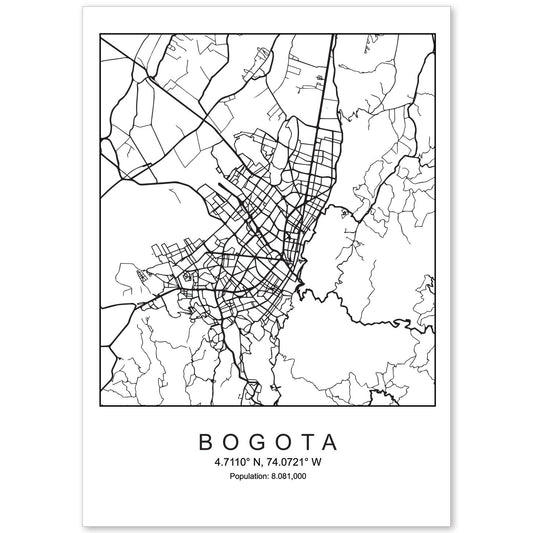 Lámina estilo nórdico de mapa de Bogota en blanco y negro