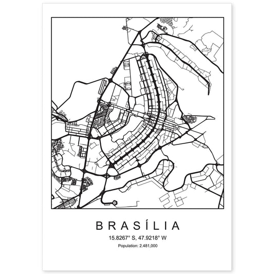 Lámina estilo nórdico de mapa Brasilia en blanco y negro