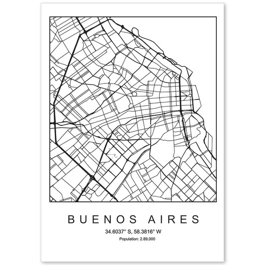Lámina de mapa estilo nórdico de Buenos Aires en blanco y negro