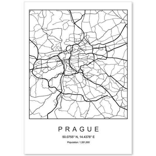Lámina estilo nórdico de mapa de Praga en blanco y negro