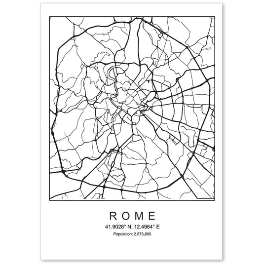 Lámina estilo nórdico de mapa de Roma en blanco y negro