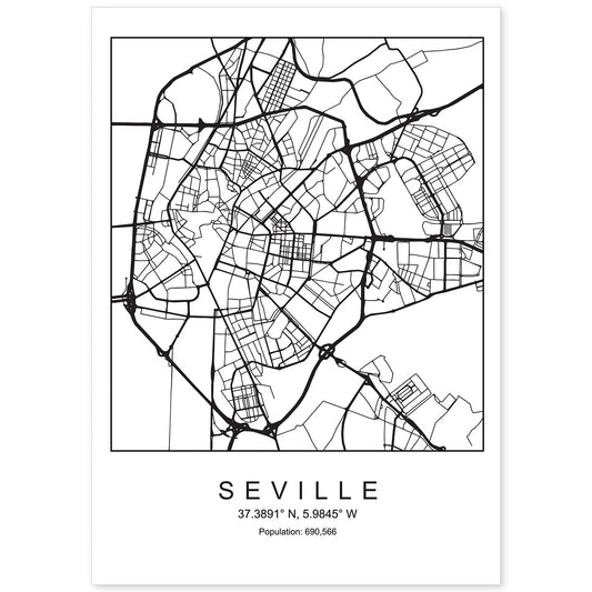 Lámina estilo nórdico de mapa de Sevilla en blanco y negro