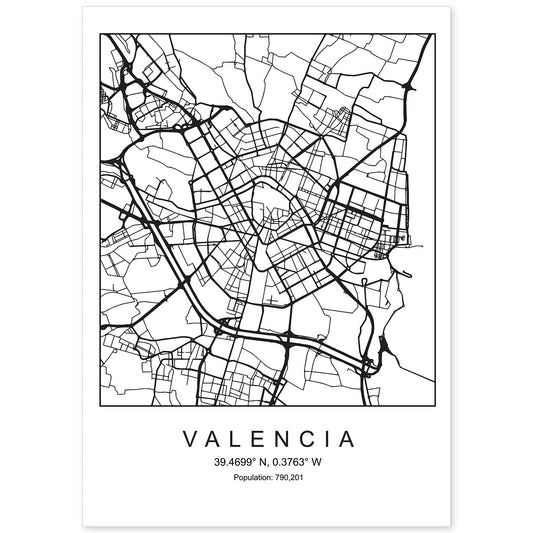 Lámina Estilo Nórdico Mapa de Valencia en Blanco y Negro