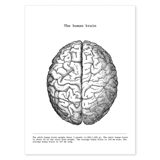 Set de 3 láminas de anatomía en blanco y negro: Corazón, Cerebro y Pulmones