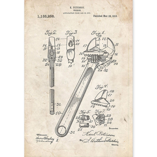 In offertaLámina de Patente de Llave Inglesa Antigua