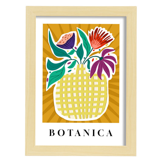 Póster de Flores en Jarrón a Cuadros Amarillo