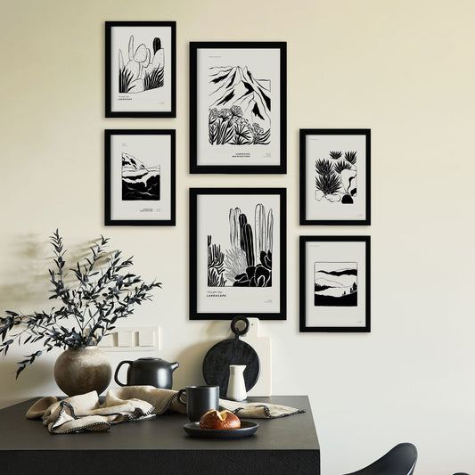 Láminas Inspiradas en Paisajes del Desierto en Tinta Negra Gruesa