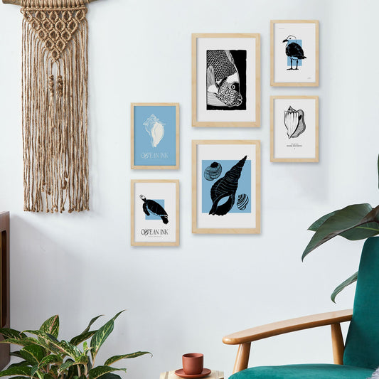 Láminas Artísticas de Conchas Marinas en Tinta Negra Gruesa