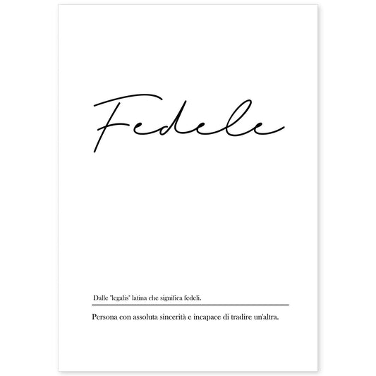 Lámina de definiciones de palabras 'Fedele' en italiano