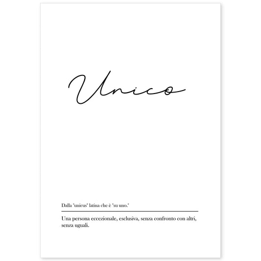 Lámina de Definiciones de Palabras en Italiano 'Unico'