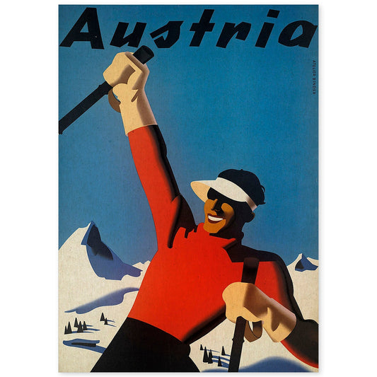 Poster Vintage de Montañas Europeas y Ski en Austria