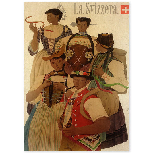 Lámina Vintage de Trajes Regionales Suizos por Kurt Wirth 1951