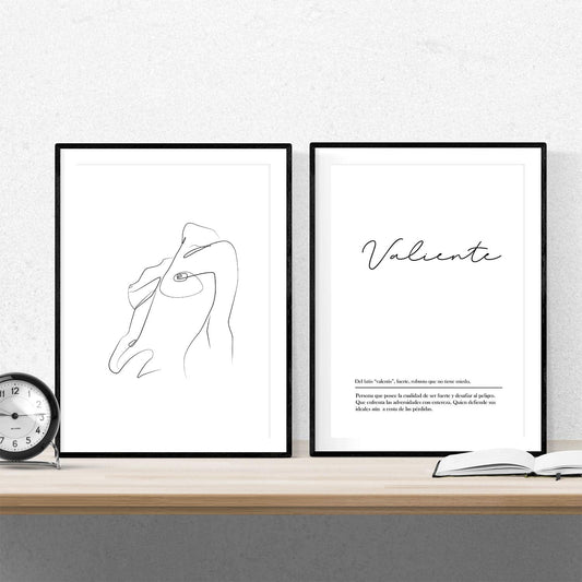 Set de 2 láminas estilo nórdico con lineas femeninas y palabras en Cuerpo Valiente