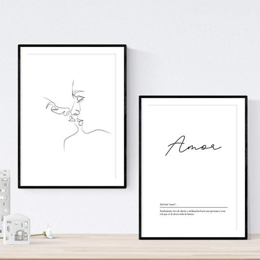 Set de 2 láminas estilo nórdico líneas femeninas y palabras amor beso