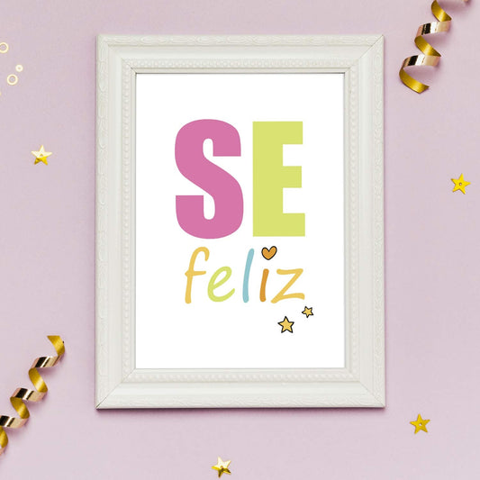 Set de 3 laminas estilo nordico Se feliz para niños y habitacion infantil