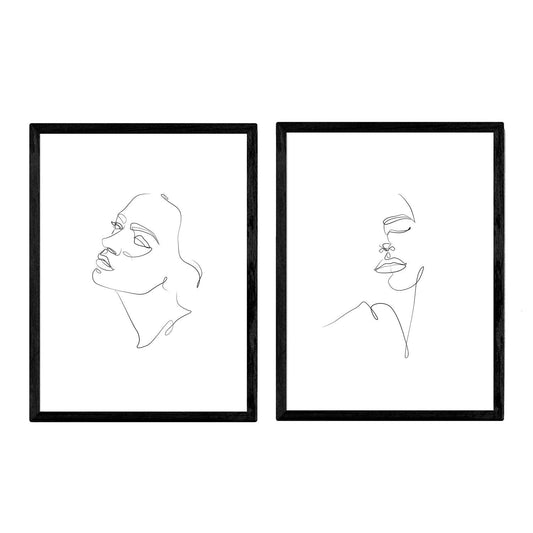 Set de 2 láminas de Dibujos de Rostro y Torso de Mujer con un Solo Trazo
