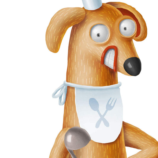 Lámina infantil de Alpaca con pañuelo azul comiendo trigo