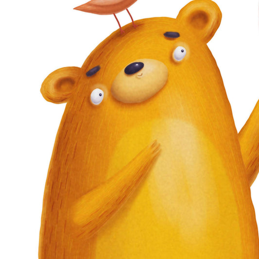 Lámina Infantil Oso Bebé con Sombrero y Pañuelo