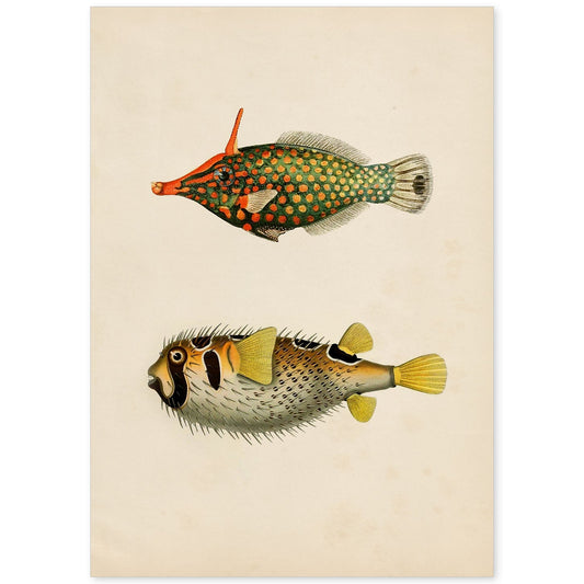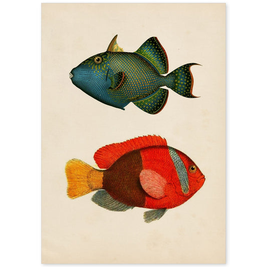 In offertaLámina Vintage de Peces en Colores Vibrantes