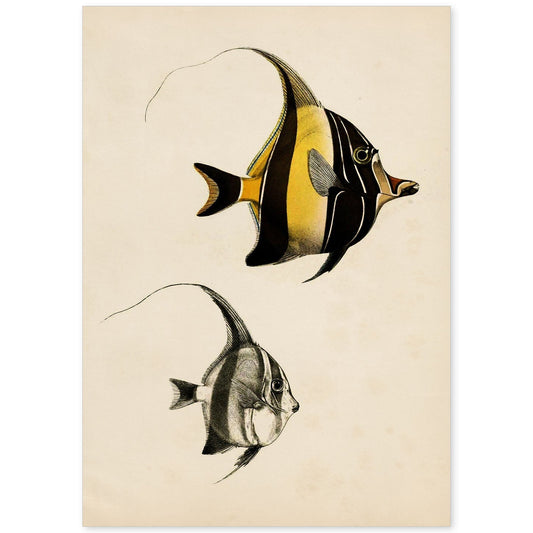 In offertaLámina Vintage de Peces Amarillo y Negro