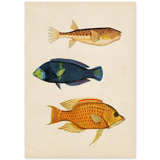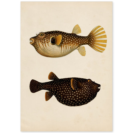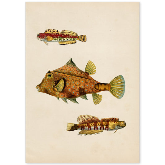 Lámina Vintage de Tres Peces Marrones y Amarillos