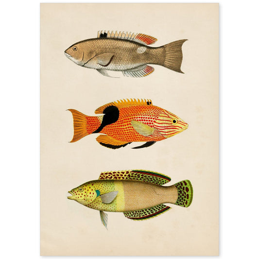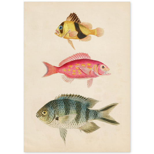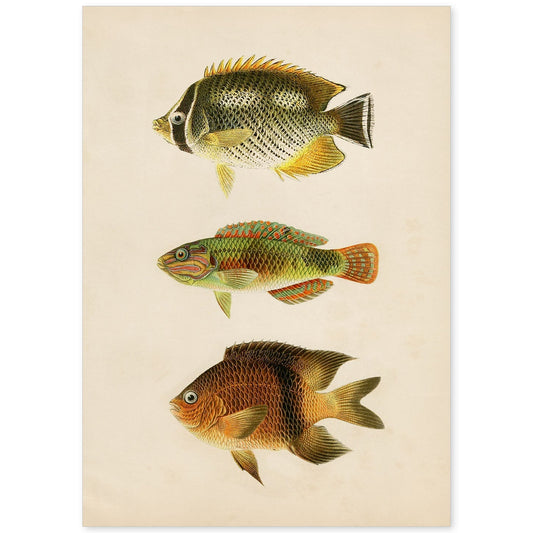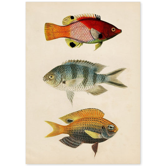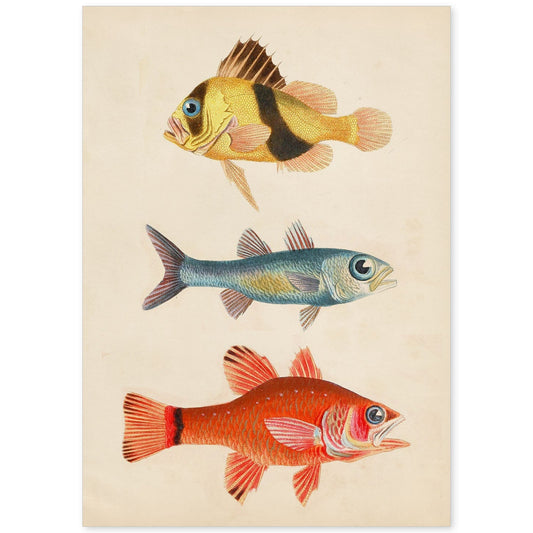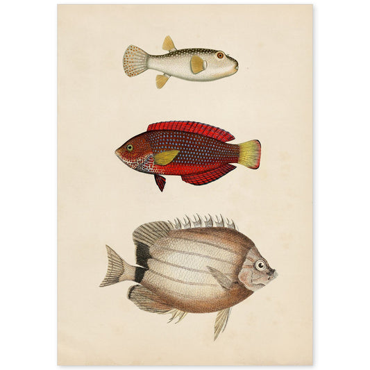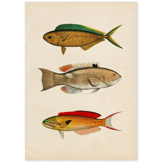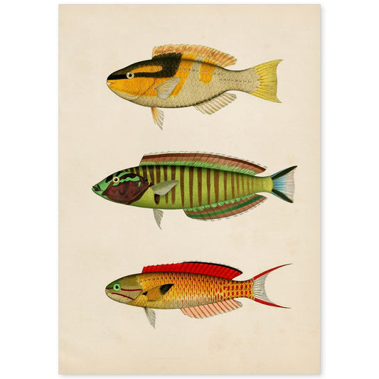 In offertaLámina de Tres Peces en Papel Vintage