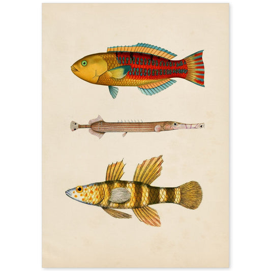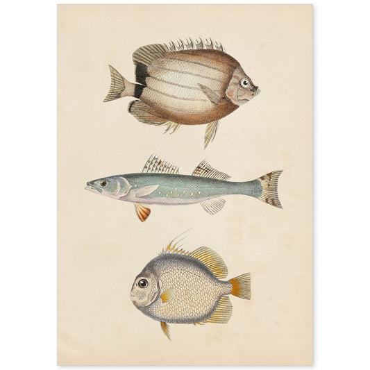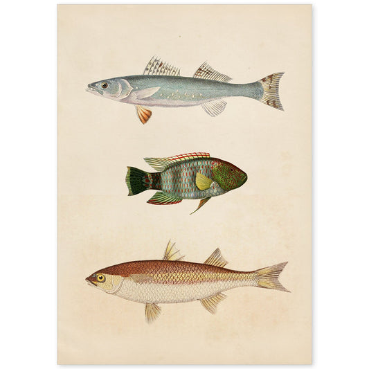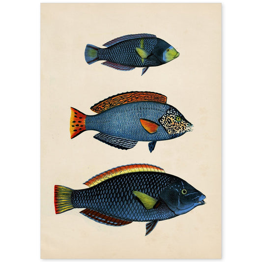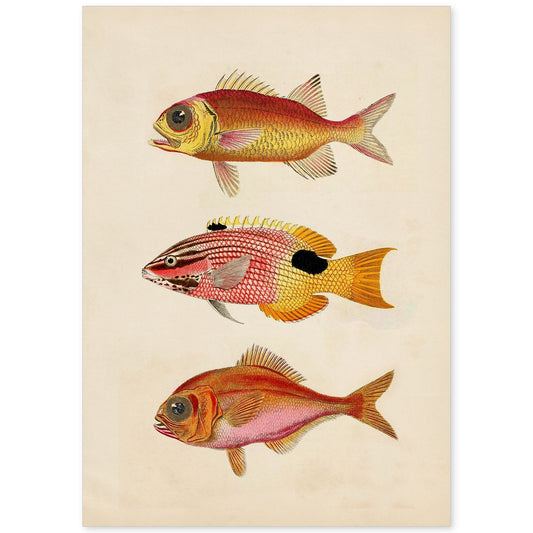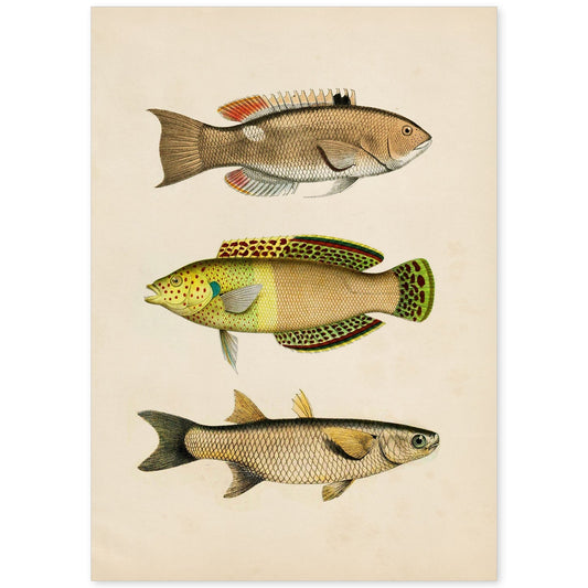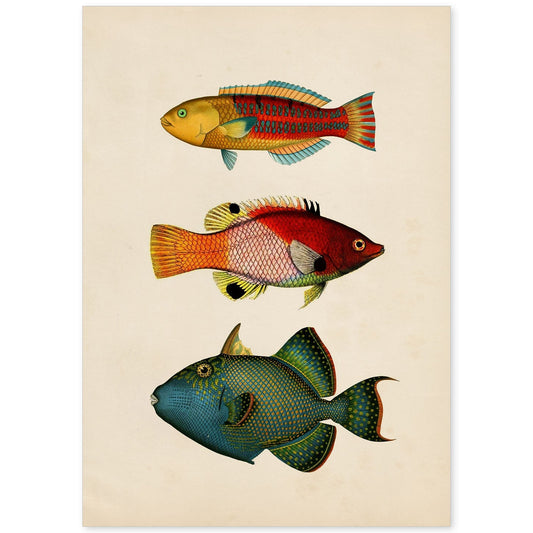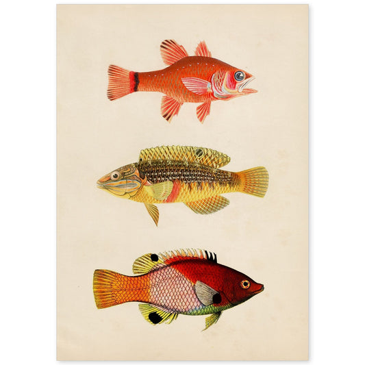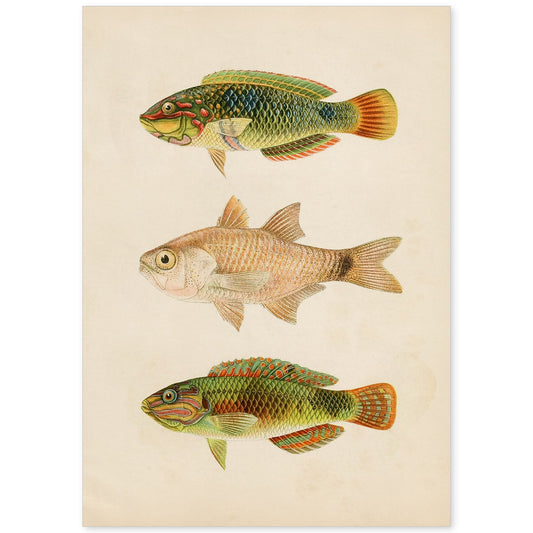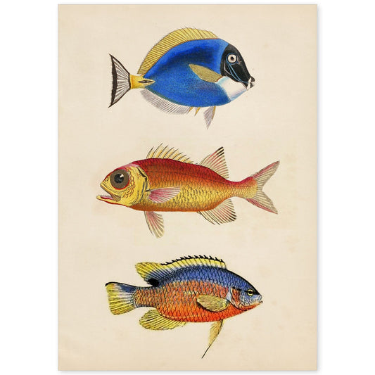 In offertaSet de Láminas Vintage de Peces Coloridos