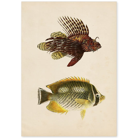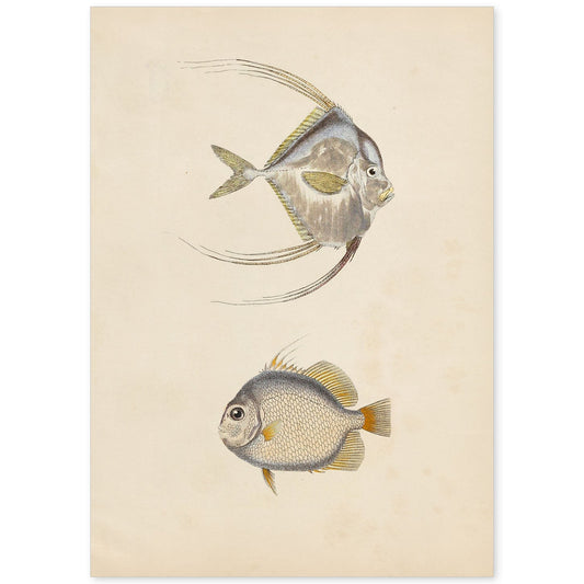 Lámina Vintage de Dos Peces Marrón, Amarillo y Verde