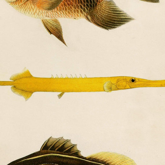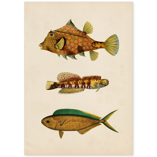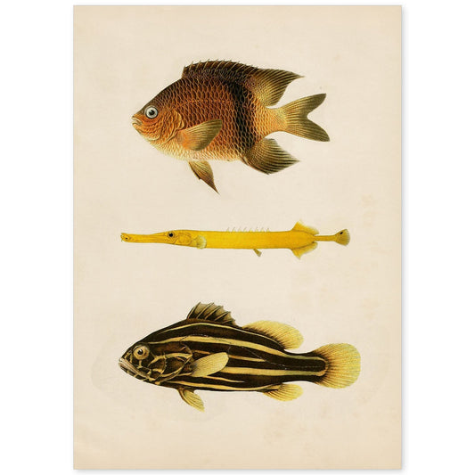 Lámina Vintage de Tres Peces Amarillo, Marron y Negro