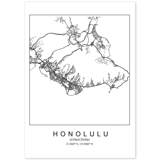 In offertaPóster de Mapa de Honolulu, Estados Unidos