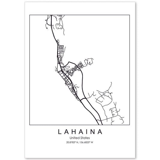 Póster de Mapa y Carreteras de Lahaina, Estados Unidos
