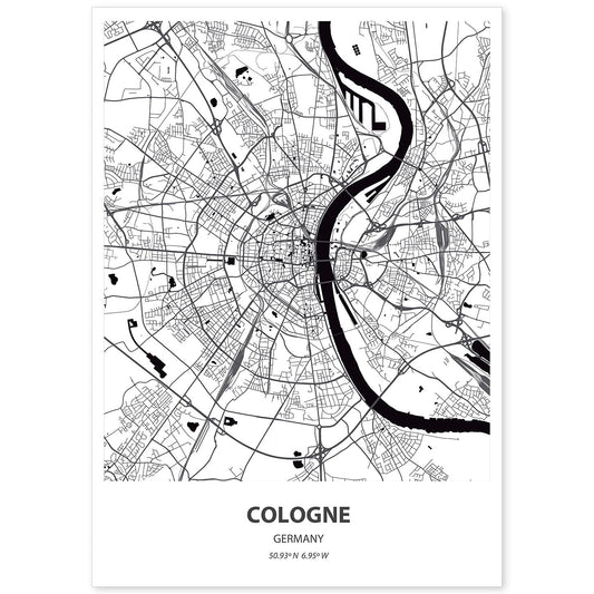 Póster de Mapa de Cologne, Alemania en Color Negro