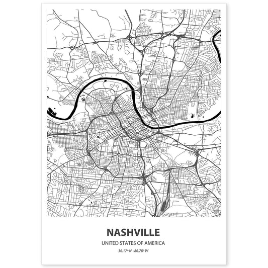 Lámina de Mapa de Cincinnati, USA en Color Negro