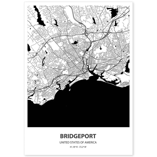 In offertaPóster de Mapa de Bridgeport, USA en Negro