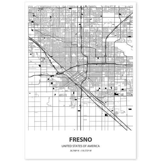 In offertaPoster de Mapa de Fresno, USA en Color Negro