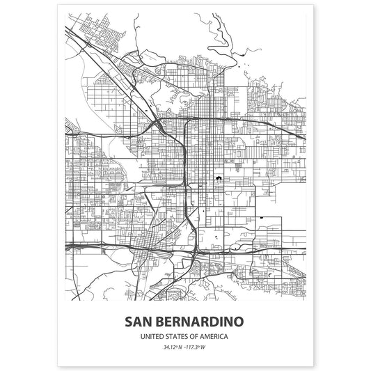 Póster de Mapa de San Bernardino, USA en Color Negro
