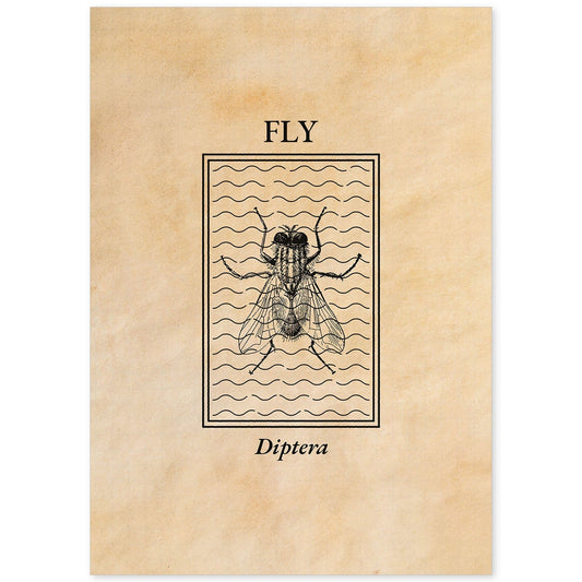 In offertaLámina Vintage Mosca en Estilo Grabado Sepia