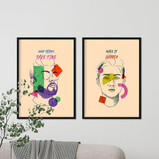 Lámina Minimalista y Colorida de Bocetos de Bustos con Mensaje