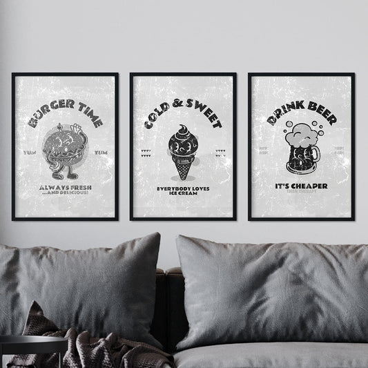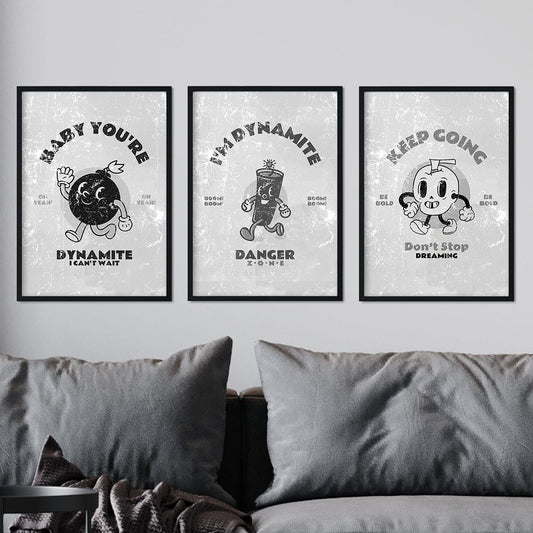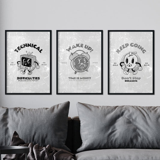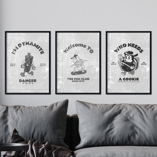 Lámina de Ilustraciones Retro Bienvenido al Club en Tonos Grises