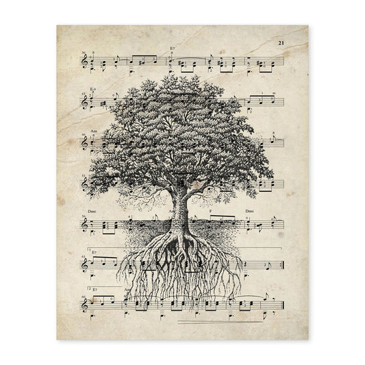 Póster de Música con Diseño de Árbol Corazón sobre Partitura