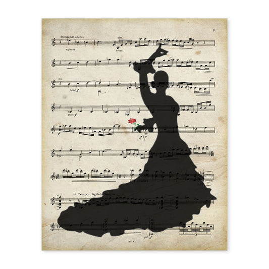 Lámina de Pareja Bailando Tango con Diseño de Música
